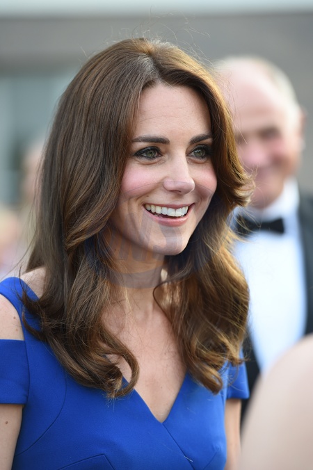 Piekna Ksiezna Kate w niebieskiej sukni podczas SportsAid's 40th anniversary dinner