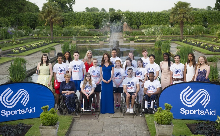 Piekna Ksiezna Kate w niebieskiej sukni podczas SportsAid's 40th anniversary dinner