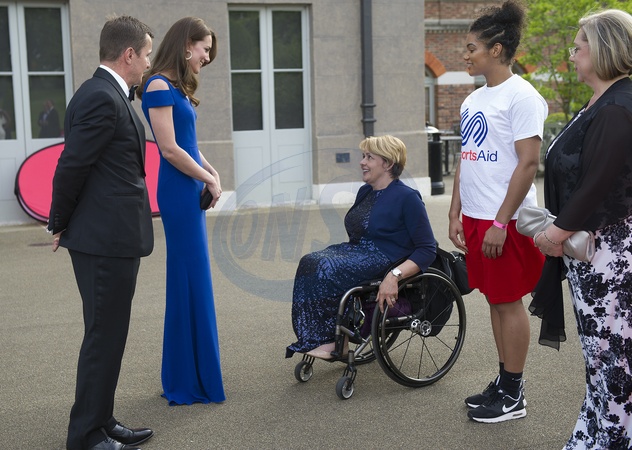 Piekna Ksiezna Kate w niebieskiej sukni podczas SportsAid's 40th anniversary dinner
