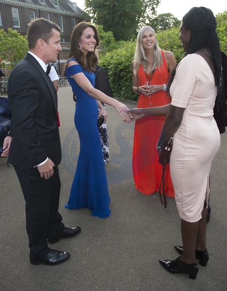 Piekna Ksiezna Kate w niebieskiej sukni podczas SportsAid's 40th anniversary dinner