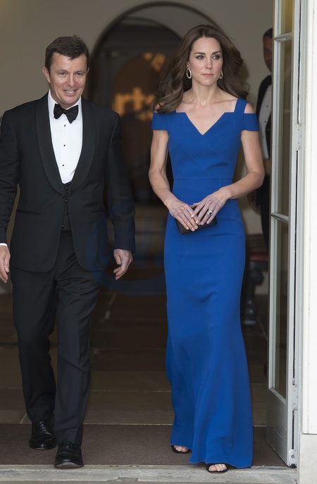 Piekna Ksiezna Kate w niebieskiej sukni podczas SportsAid's 40th anniversary dinner