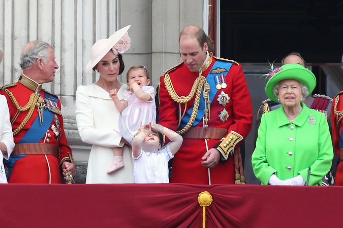Ksiaze Karol, ksiezna Kate, ksiaze William, ksiaze Jerzy, ksiezniczka Charlotte - Karolina, krolowa Elzbieta II