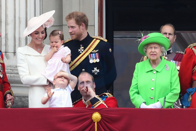 ksiezna Kate, ksiaze William, ksiaze Jerzy, ksiezniczka Charlotte - Karolina, krolowa Elzbieta II, ksiaze Harry