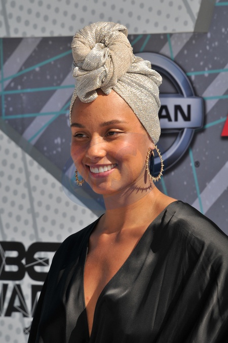 Alicia Keys bez makijazu i w turbanie na glowie, BET Awards