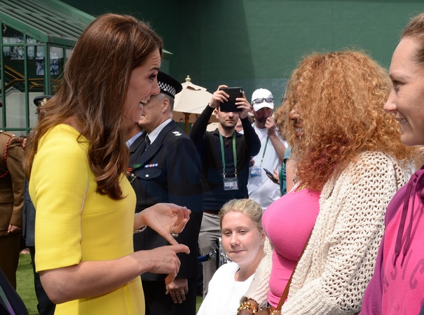 Ksiezna Kate w zoltej, prostej sukience na Wimbledonie