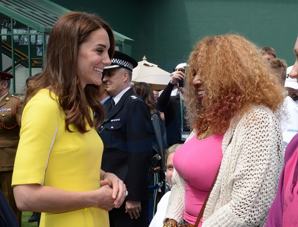 Ksiezna Kate w zoltej, prostej sukience na Wimbledonie