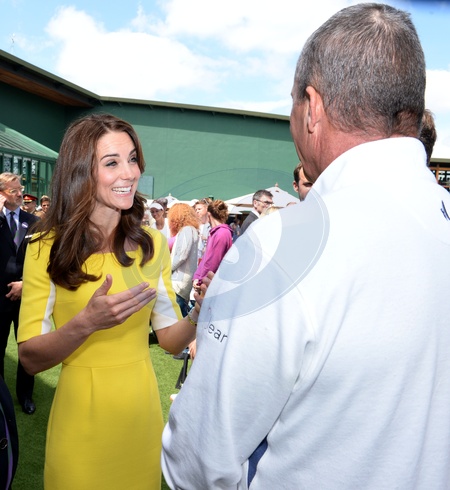 Ksiezna Kate w zoltej, prostej sukience na Wimbledonie