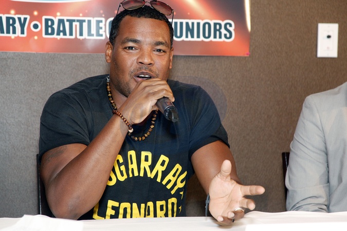 Ray Leonard Jr i Marvin Hagler Jr na konferencji przed walka