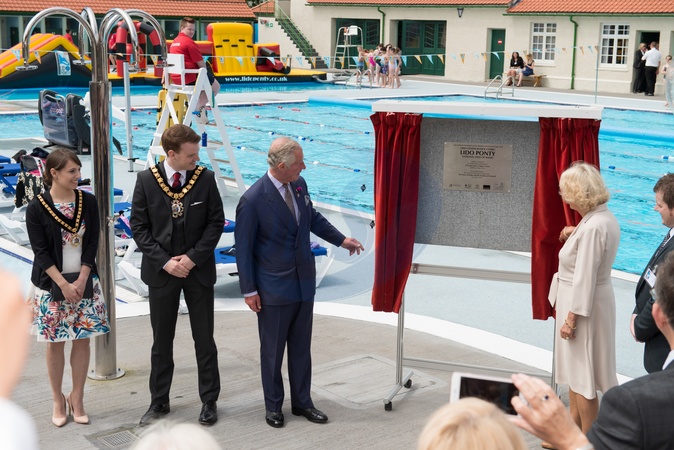 Ksiaze Karol i Camilla na otwarciu basenu Ponty Lido