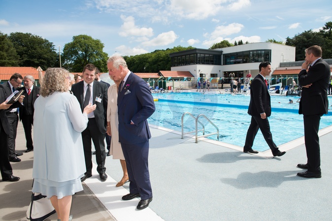 Ksiaze Karol i Camilla na otwarciu basenu Ponty Lido