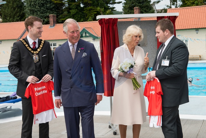 Ksiaze Karol i Camilla na otwarciu basenu Ponty Lido