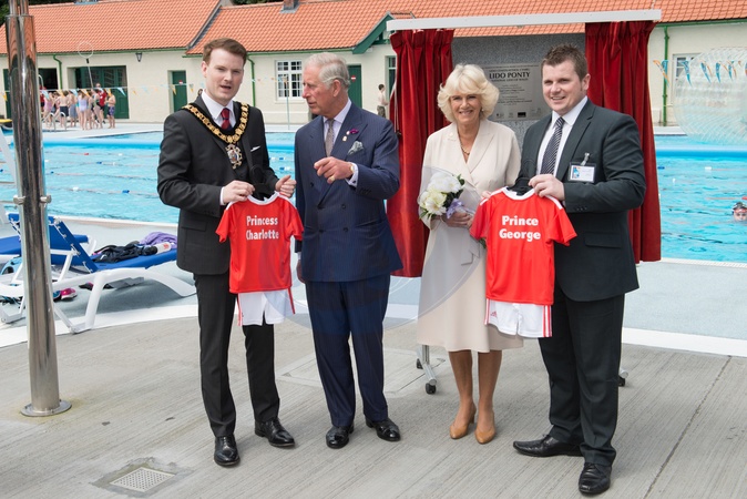 Ksiaze Karol i Camilla na otwarciu basenu Ponty Lido