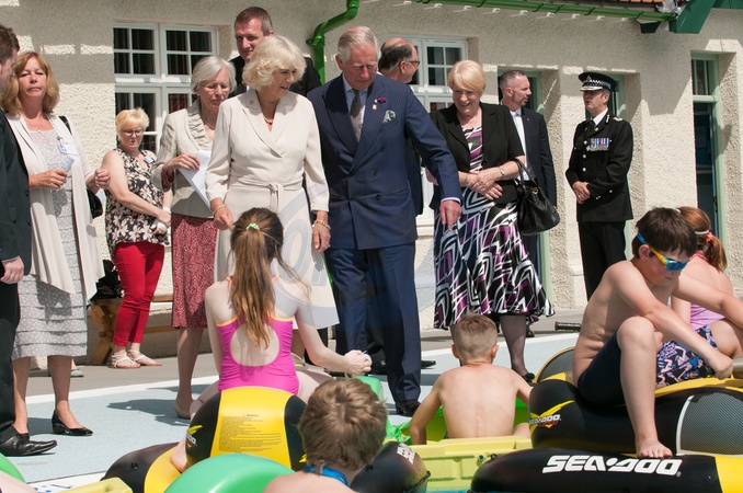 Ksiaze Karol i Camilla na otwarciu basenu Ponty Lido