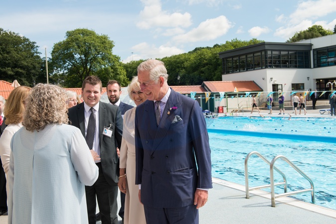 Ksiaze Karol i Camilla na otwarciu basenu Ponty Lido