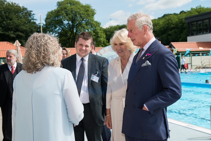 Ksiaze Karol i Camilla na otwarciu basenu Ponty Lido