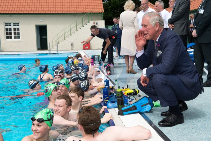 Ksiaze Karol i Camilla na otwarciu basenu Ponty Lido
