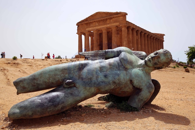 Agrigento Sycylia Swiatynia Concordia rzezba Mitoraja