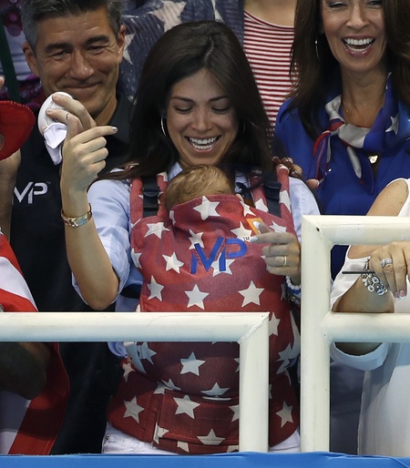Igrzyska w RIO - Zona Michaela Phelpsa z dzieckiem na trybunach