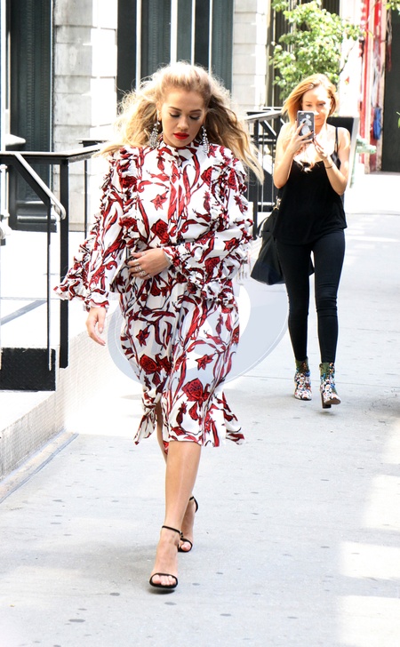 Rita Ora we wzorzystej sukience