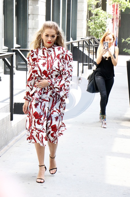 Rita Ora we wzorzystej sukience