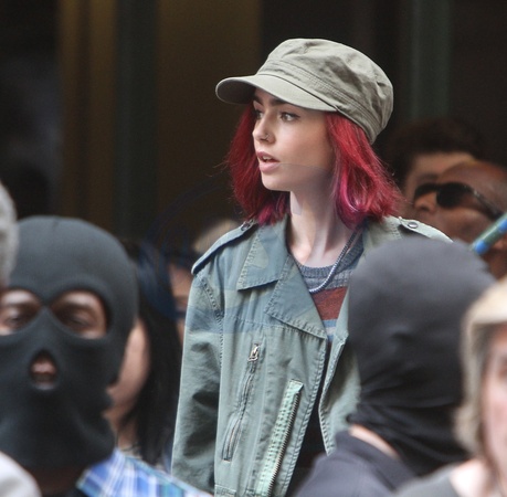 Lily Collins w czerwonych wlosach na planie Okja