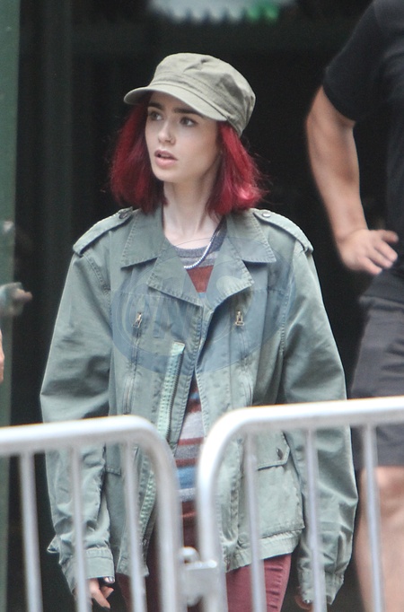 Lily Collins w czerwonych wlosach na planie Okja