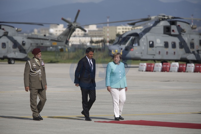 Spotkanie politykow we Wloszech - Premier Wloch, kanclerz Niemiec i prezydent Francji