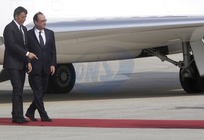 Spotkanie politykow we Wloszech - Premier Wloch, kanclerz Niemiec i prezydent Francji