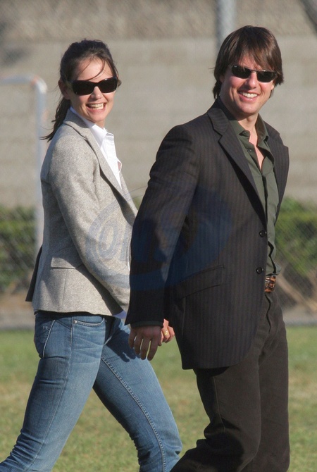 Tom Cruise z narzeczona Katie Holmes i z mama Mary Lee, podczas meczu swojej adoptowanej corki Isabelli w Los Angeles