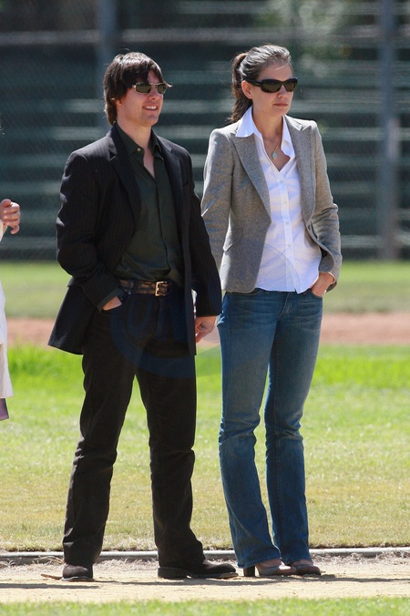 Tom Cruise z narzeczona Katie Holmes i z mama Mary Lee, podczas meczu swojej adoptowanej corki Isabelli w Los Angeles