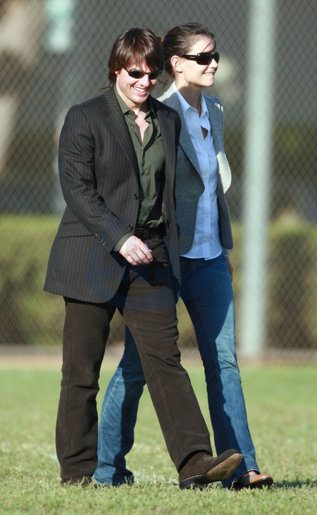 Tom Cruise z narzeczona Katie Holmes i z mama Mary Lee, podczas meczu swojej adoptowanej corki Isabelli w Los Angeles