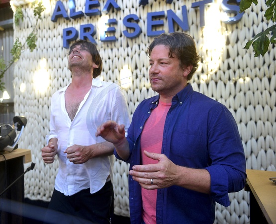 Jamie Oliver jako dj podczas The Big Feastival at Alex James' Farm