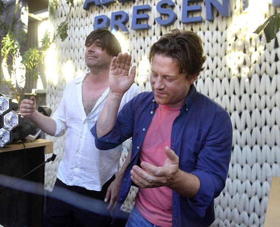 Jamie Oliver jako dj podczas The Big Feastival at Alex James' Farm