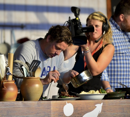 Jamie Oliver podczas The Big Feastival at Alex James' Farm