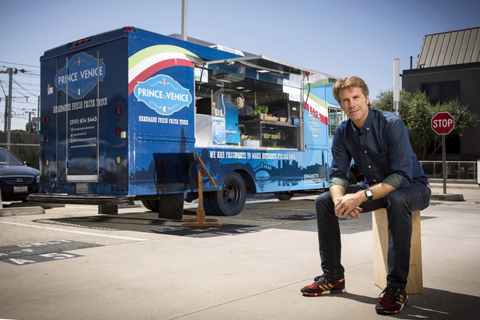 Emanuel Filibert, ksiaze Wenecji i Piemontu sprzedaje z auta dania z makaronu