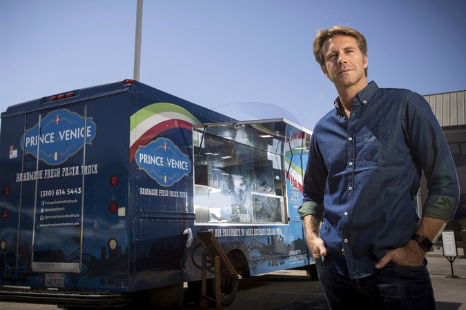 Emanuel Filibert, ksiaze Wenecji i Piemontu sprzedaje z auta dania z makaronu