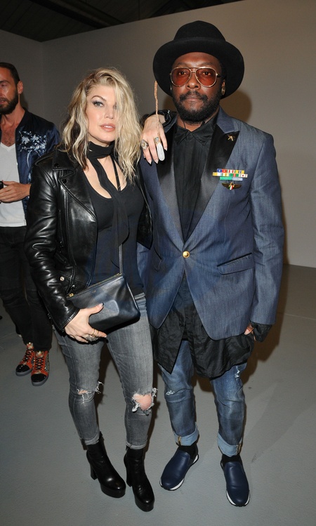 Will.i.am i Fergie Duhamel pozuja razem do zdjec na pokazie Gareth Pugh LFW