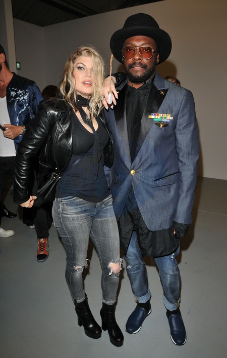 Will.i.am i Fergie Duhamel pozuja razem do zdjec na pokazie Gareth Pugh LFW