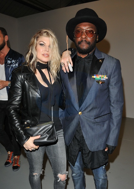 Will.i.am i Fergie Duhamel pozuja razem do zdjec na pokazie Gareth Pugh LFW
