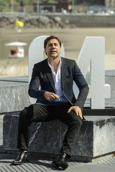 Javier Bardem pozuje do zdjec na festiwalu w San Sebastian