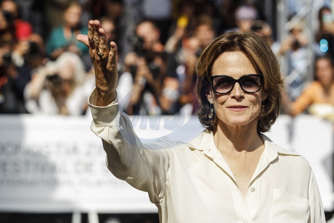 Sigourney Weaver w koszuli, spodniach i trampkach w San Sebastian