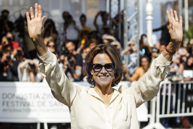Sigourney Weaver w koszuli, spodniach i trampkach w San Sebastian