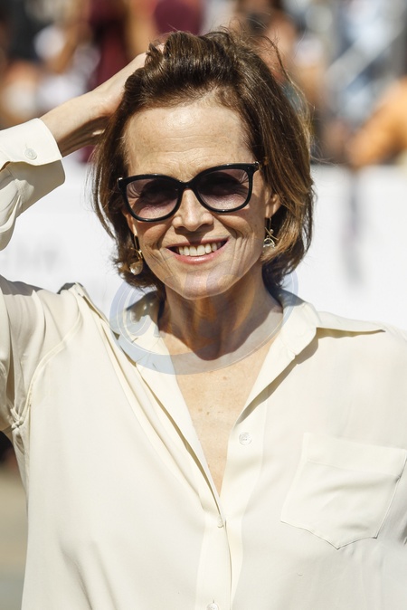 Sigourney Weaver w koszuli, spodniach i trampkach w San Sebastian