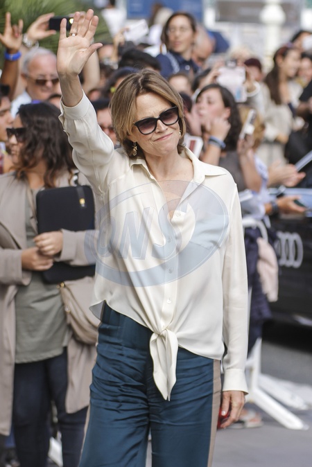 Sigourney Weaver w koszuli, spodniach i trampkach w San Sebastian