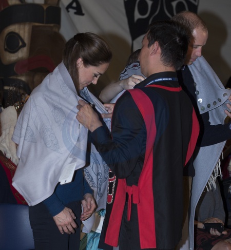 Ksiezna Kate i ksiaze William w Bella Bella First Nations community, Kanada