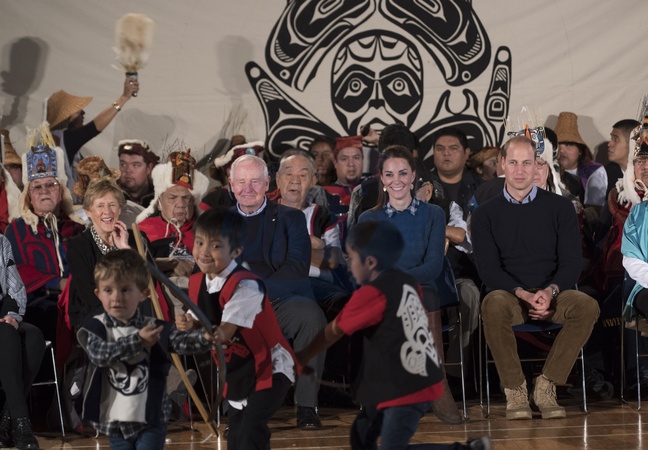 Ksiezna Kate i ksiaze William w Bella Bella First Nations community, Kanada