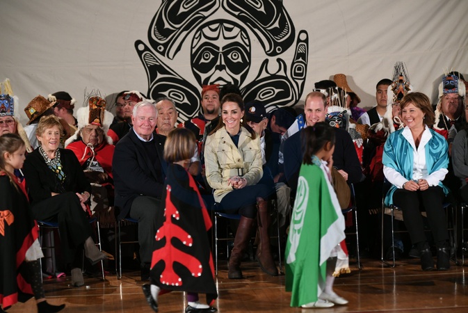 Ksiezna Kate i ksiaze William w Bella Bella First Nations community, Kanada