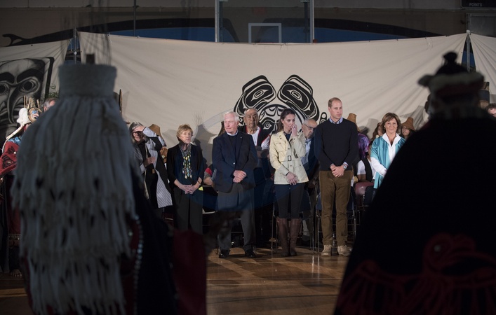 Ksiezna Kate i ksiaze William w Bella Bella First Nations community, Kanada