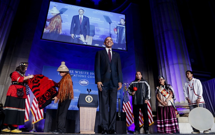 Barack Obama w tradycyjnym kocu i kapeluszu