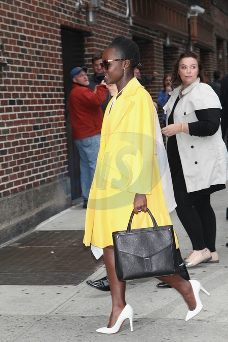 Lupita Nyongo w zoltym plaszczyku